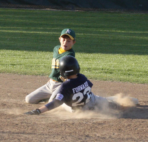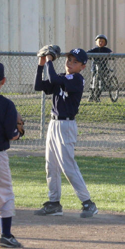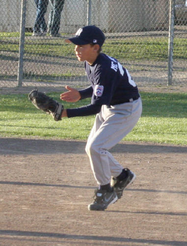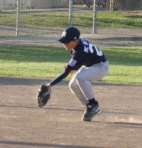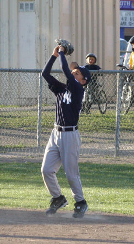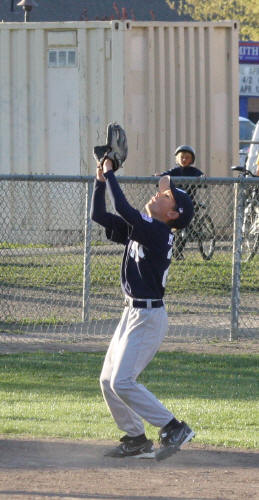 ![]() AJ catching a low fly ball. Sequence of three photos. The ball is in the glove already. (I can only aim the camera so fast) |